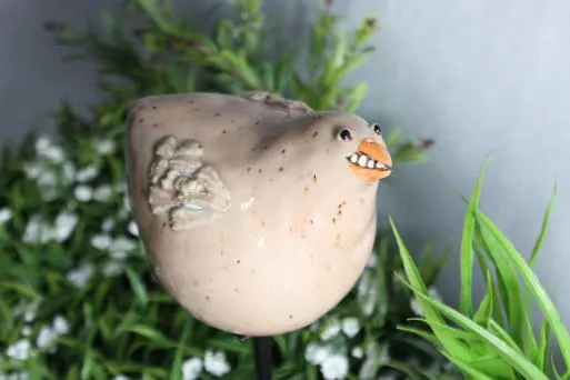 Vogelkopf zum Aufstecken auf Stab oder Stiel im Pflanzkübel oder im Garten.